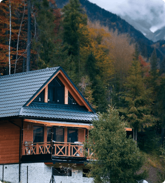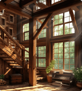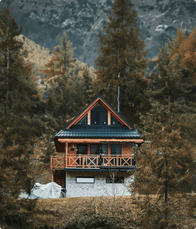 Welcome to Stillness Step into a space where nature greets you first. The cabin’s front blends wood, greenery, and soft light to create a peaceful threshold, a quiet invitation to slow down and settle in.